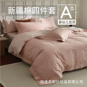 Категория Комплект из четырех предметов из чистого стираного хлопка для матери и ребенка, маленькая свежая простыня, пододеяльник для студенческого общежития, комплект простыней из трех предметов