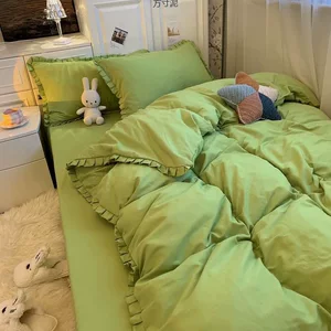 Свежий чистый цвет промытого хлопка, приятная для кожи шлифовка из четырех частей, комплект для общежития в стиле принцессы, пододеяльник, наволочка, пододеяльник, цельный