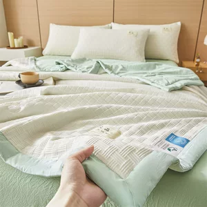 Однотонное летнее одеяло из тенселя, комплект из четырех предметов, простое вышитое широкое края, стираное шелковое ледяное шелковое летнее прохладное одеяло, прохладное одеяло с кондиционером