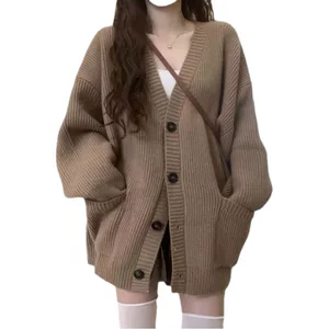 Новый женский вязаный кардиган на пуговицах в европейском и американском стиле, осенне-зимний однотонный повседневный модный свитер-пальто 2026 года
