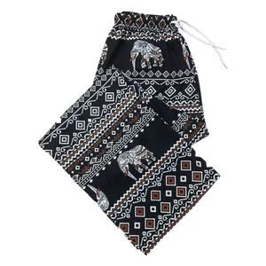 Широкие брюки из ледяного шелка для женщин среднего и старшего возраста, большие размеры, с цветочным принтом, на резинке, укороченные леггинсы, брюки для мам, дышащие и комфортные.
