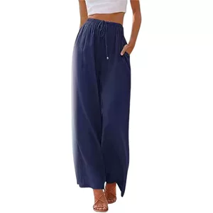 2025 Amazon, повседневные льняные брюки с высокой талией и завязками по бокам, широкие брюки, струящиеся широкие пляжные брюки, эластичные