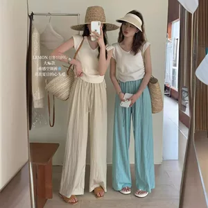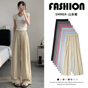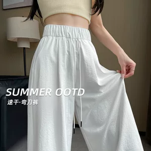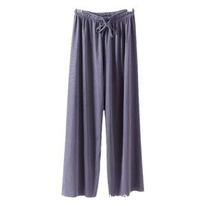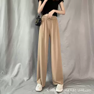 Женские брюки с широкими штанинами из ледяного шелка, новые вертикальные свободные прямые тонкие повседневные тонкие швабры с подвеской