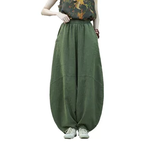 2023 Новые европейские и американские трансграничные хлопковые брюки Amazon Wish Свободные хлопковые брюки с высокой талией и пуговицами до щиколотки Широкие женские брюки