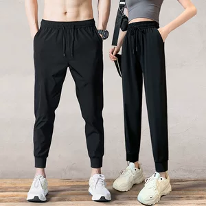 Женские спортивные брюки из ледяного шелка 2026 года, летние тонкие прямые свободные повседневные черные брюки с высокой талией и широкими штанинами для весны и осени.