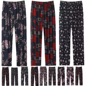 Широкие брюки из ледяного шелка для женщин среднего и старшего возраста, большие размеры, с цветочным принтом, на резинке, укороченные леггинсы, брюки для мам, дышащие и комфортные.