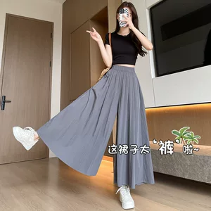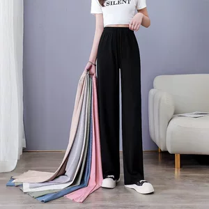 Женские брюки с широкими штанинами из ледяного шелка, новые вертикальные свободные прямые тонкие повседневные тонкие швабры с подвеской