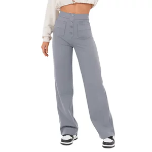2024 Европа и США Amazon трансграничные осенние новые женские повседневные свободные карманные трикотажные прямые брюки с высокой талией