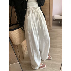 Женские брюки из ледяного шелка и молочного шелка Yamamoto, новинка лета 2026, повседневные спортивные брюки для невысоких, белые широкие брюки в стиле lazy style.