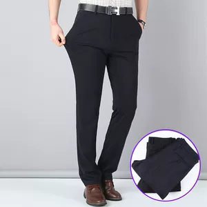Весенние и летние тонкие деловые брюки для мужчин, повседневные брюки, классические мужские брюки, свободные прямые брюки с эластичной тканью для мужчин среднего возраста.