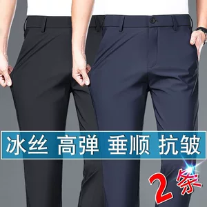 Высокие эластичные брюки мужские весенние и летние прямые стройные деловые платья тонкие ледяные шелковые джентльменские повседневные брюки профессиональные брюки