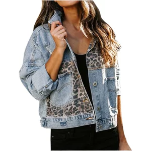 Новая трансграничная джинсовая куртка Amazon Independent Station, женская Европейская и американская Женская куртка с длинным рукавом, женский топ с леопардовым принтом