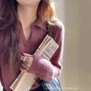 Европейская станция 2025 внешняя торговля AliExpress Wish взрывная рубашка новый сплошной цвет кружевной кардиган с V-образным вырезом женская рубашка