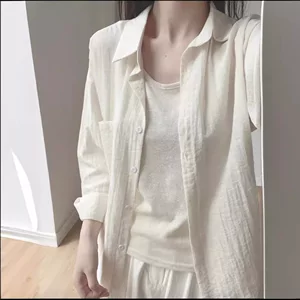 Белая рубашка женский новый 2024 весна лето французский темперамент свободный рубашка солнцезащитный кардиган с длинными рукавами топ