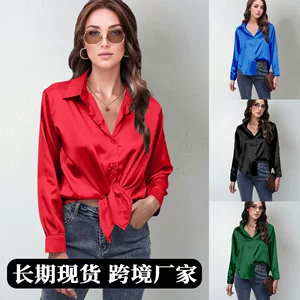 Хит продаж, атласная рубашка с реальным выстрелом, женская атласная рубашка с длинными рукавами из искусственного шелка, новая европейская и американская внешняя торговля, трансграничная женская одежда