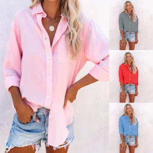 2023 Весна и Осень Asma Sun ebay Европа и США сплошные цвета повседневные свободные льняные рубашки с длинными рукавами на месте