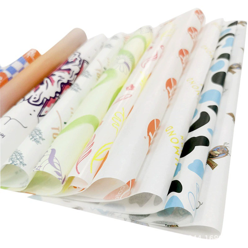 Оптовая продажа полупрозрачная 31 г вощеная бумага для пытки бумажный букет упаковочная бумага для гамбургера прокладок масляный воск пищевой упаковки печати