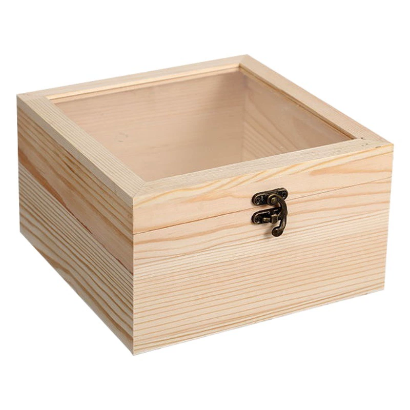 Незавершенная прямоугольная деревянная коробка для товаров для дома Сосновая деревянная коробка с замком Деревянная коробка для хранения