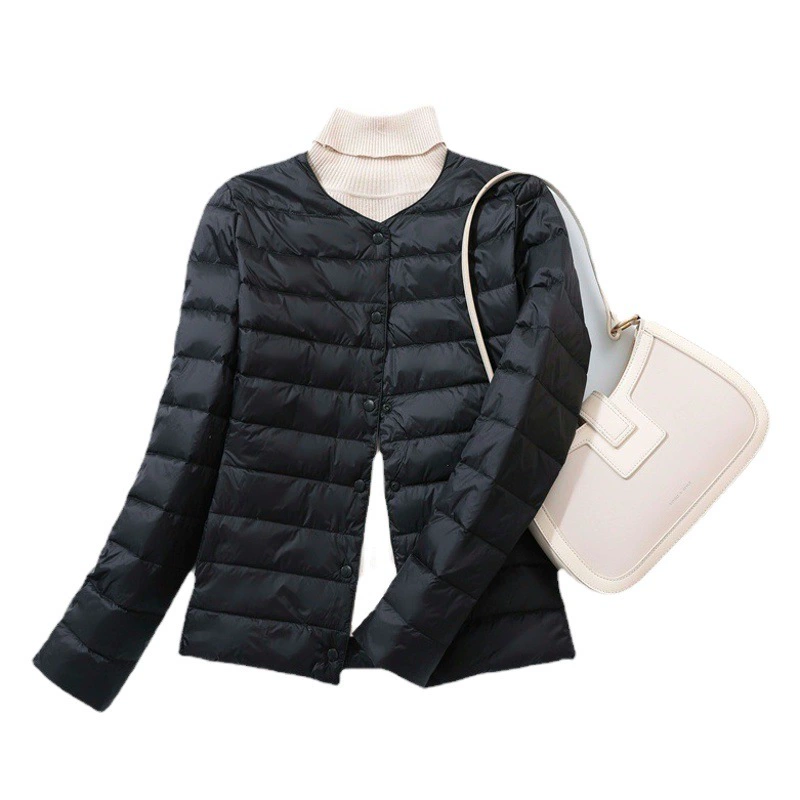 Легкий женский пуховик, короткий 2024, осень и зима, новинка, v-образный вырез, круглый вырез, длинный рукав, белый утиный пух, легкая куртка большого размера