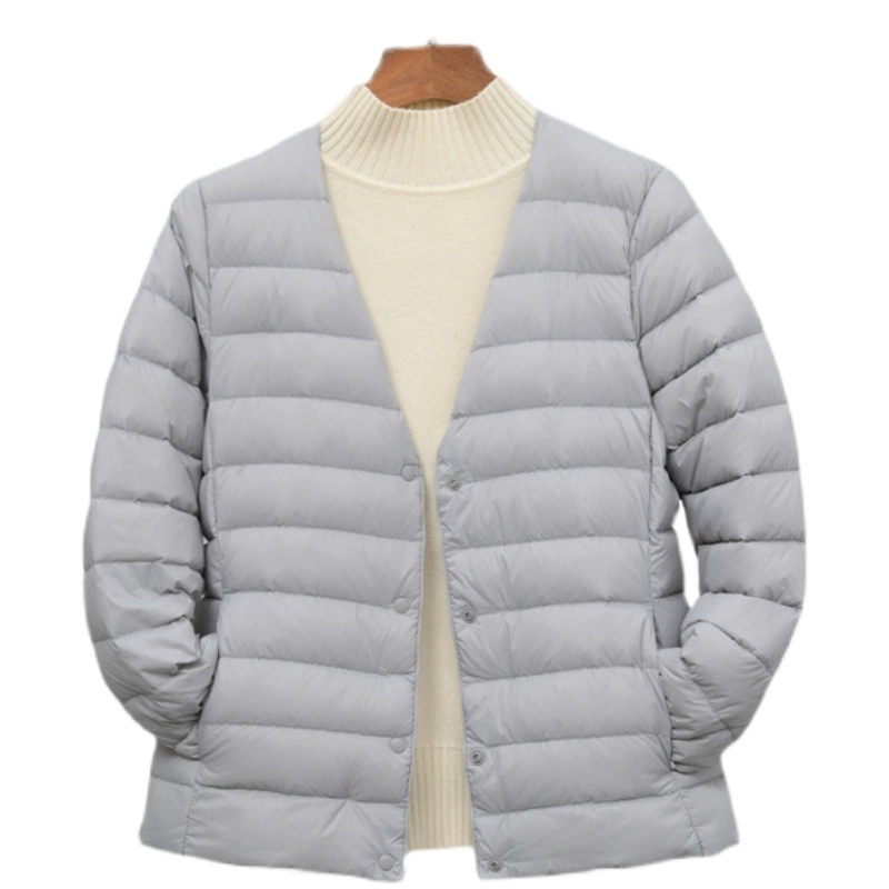 Новый национальный стандарт 90, легкий пуховик с бархатной подкладкой, женский короткий без воротника, осень и зима 2025, тонкий белый утиный пух, легкая внутренняя одежда
