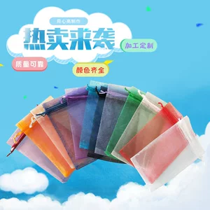 Готовый запас производителя, однотонная прозрачная сумка из органзы на шнурке, упаковка для ювелирных изделий, сетчатая сумка, подарок, свадебная марлевая сетчатая сумка для конфет
