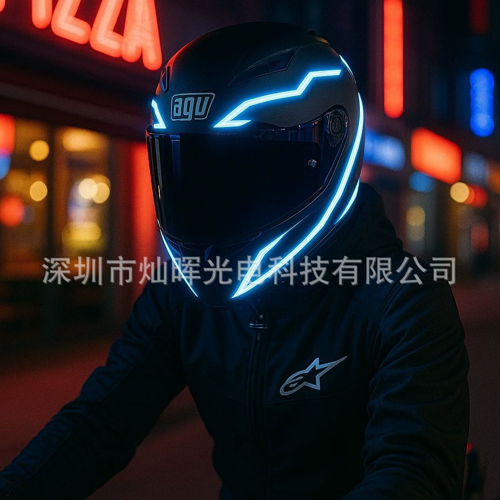 Светящаяся полоса для шлема, светящаяся световая полоса TikTok, тот же стиль, мотоциклетный шлем, светящаяся полоса, декоративная клейкая светящаяся полоса