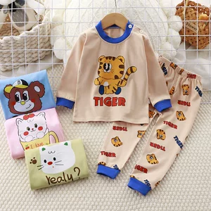 Детский хлопковый комплект нижнего белья, новая осенняя коллекция, домашняя одежда для мальчиков, теплая одежда для малышей, осенние топы и брюки для девочек, детская одежда