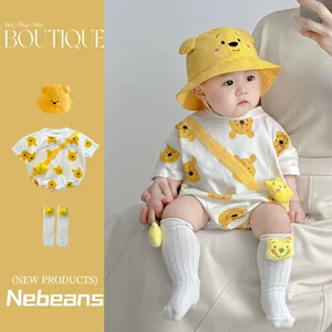 Новый хлопковый комбинезон-песочник с коротким рукавом для новорожденных, класс А, весенняя детская одежда, модель осень 2026