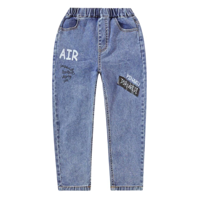 2024 весна и осень новый стиль детские джинсовые брюки для маленьких девочек с эластичным принтом