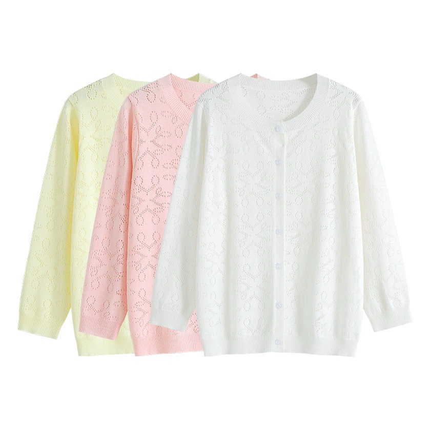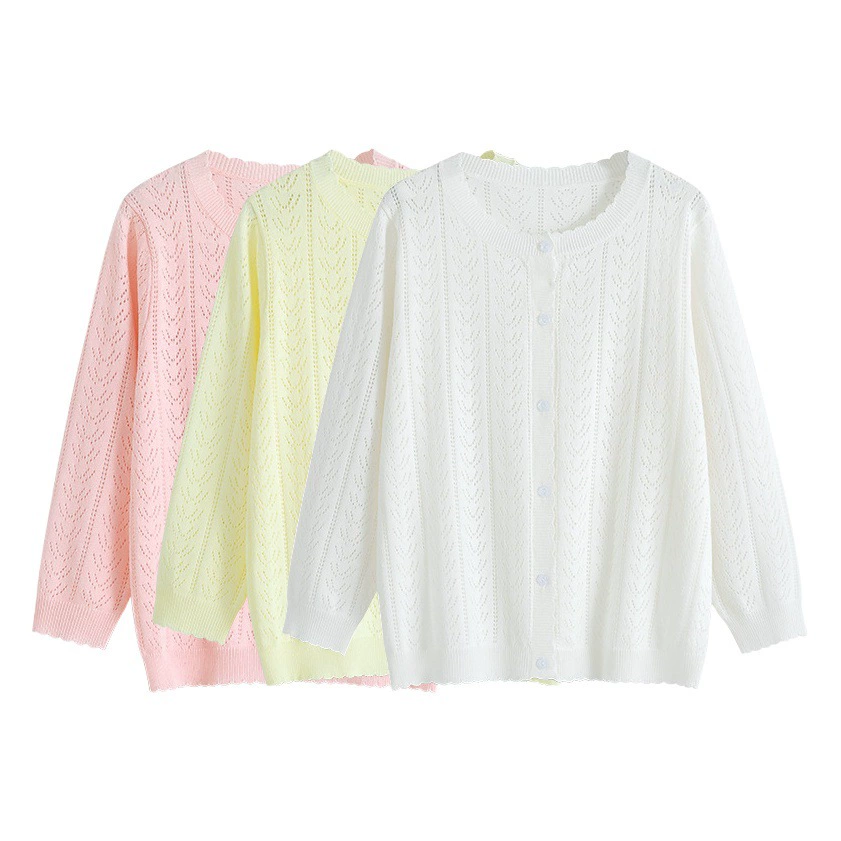 Трансграничная новая корейская версия с круглым вырезом для девочек трикотажный кардиган куртка для больших и средних детей свитер платок для кондиционеров тонкая летняя