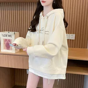 Оптовая продажа одежды, хлопковая поддельная толстовка из двух частей для женщин, свободная модная в корейском стиле, универсальная студенческая весенне-осенняя одежда для внешней торговли.
