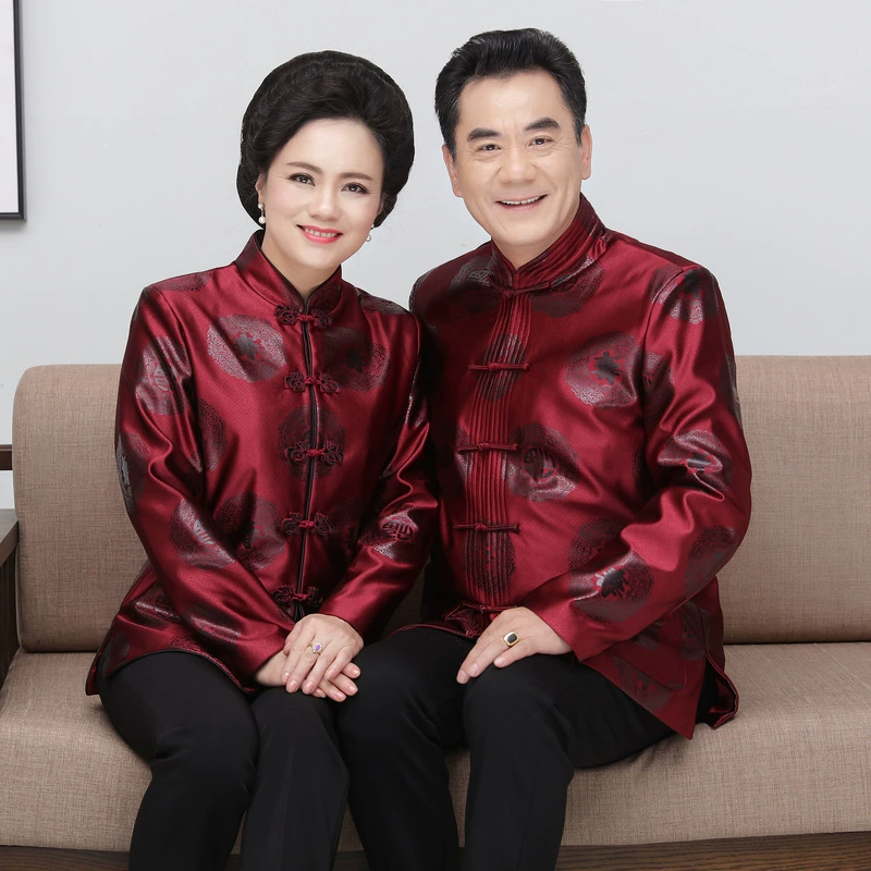 Осенне-зимнее платье Tang 2383-4 для пар среднего и пожилого возраста, мужское и женское платье с длинными рукавами на день рождения, платье для пожилых людей в китайском стиле
