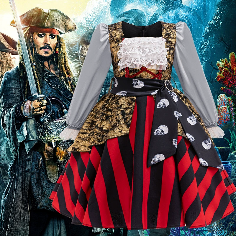 Трансграничные новые детские принцессы юбки косплей пиратский капитан девочка хэллоуин одеваются костюмы для детей