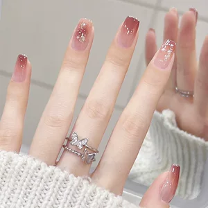 Эксклюзивные модные накладные ногти ручной работы с дизайном из дробленых бриллиантов и бабочек, оптом.