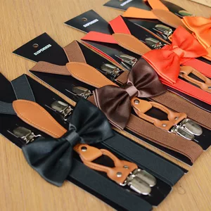 Фабрика прямо в наличии Детский однотонный ремешок клип + галстук-бабочка костюм детский сад производительность подтяжки