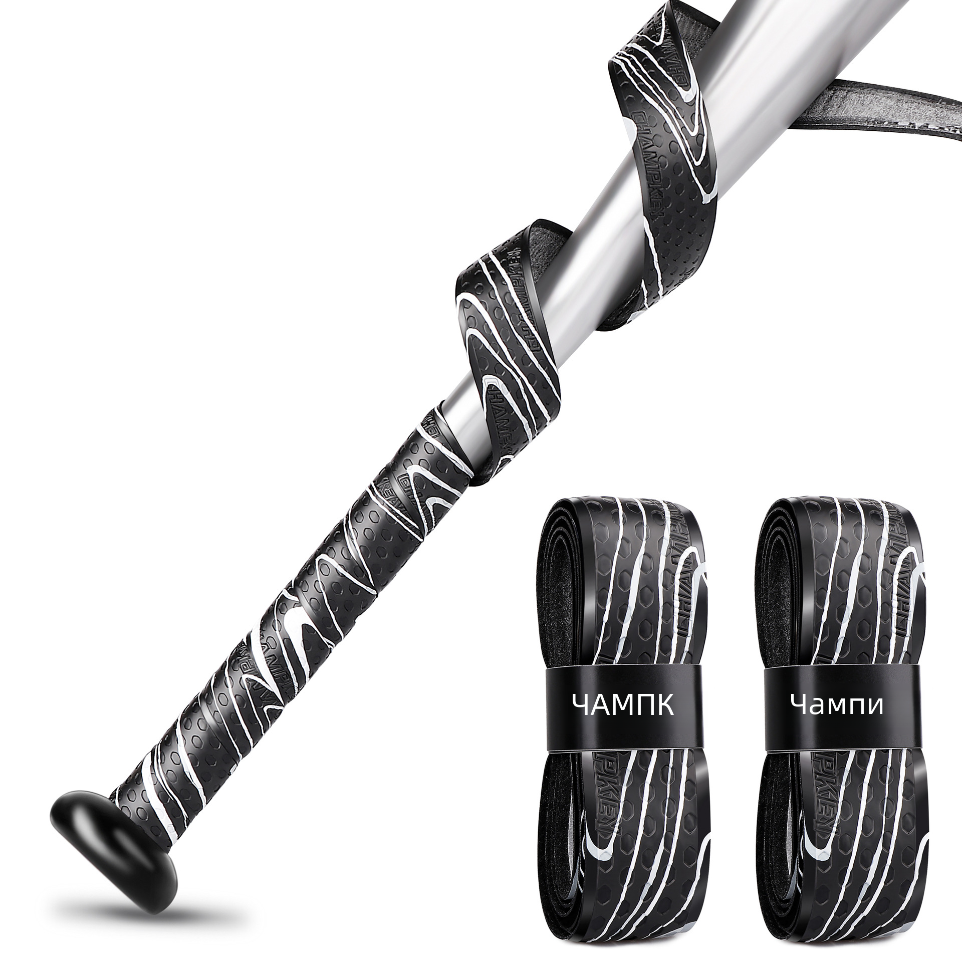 Бейсбольный ремень CHAMPKEY с намоткой из полиуретана снижает трение руки, делает клюшку мяча более удобной и усиливает чувство удара