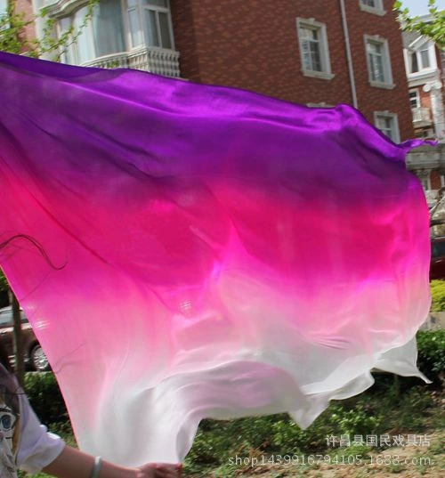 Бесплатная Доставка Шелковый шарф для танца живота танцевальный градиентный шарф фиолетовый розовый белый градиент танец живота шелковая ручная пряжа бросить шарф