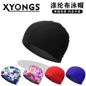 Заводская прямая продажа полиэфирная ткань плавательная шапка высокая эластичная для взрослых универсальная одноцветная цветная индивидуальная упаковка картонная кепка для плавания
