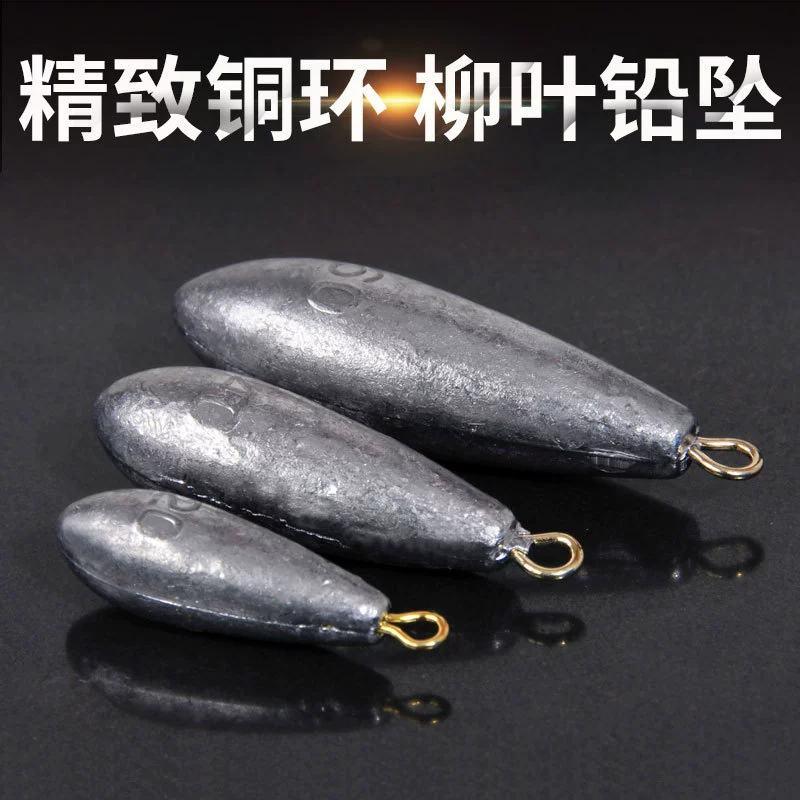 Оловянный грузило с медным кольцом для дальнего заброса, каплевидное грузило с кольцом для рыбалки, удочка для приманки, морская удочка, кольцо из листьев ивы, круглое кольцо для рыбалки.