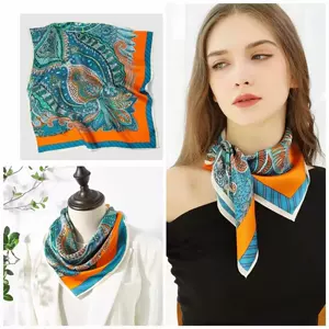 70 шелковых шарфов Квадратные шарфы высокого уровня Корейская мода дикая профессиональная имитация шелка маленький шарф ретро принт шелковый шарф женский