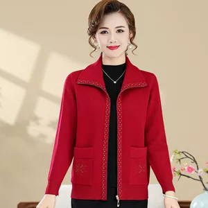 Среднего и пожилого возраста женский бабушка весенне-осенний свитер кардиган 60 лет-70 лет-мама осенне-зимнее пальто на флисовой подкладке утолщенное