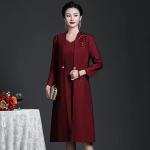 Дама простой длинный рукав 2024 весна и осень лето средний возраст тонкий мама платье большой размер свободный кардиган тонкий пальто женский
