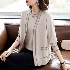 Весенний свитер для бабушки Кардиган Свободный на весну и осень Женская одежда для женщин среднего и пожилого возраста Весенняя и осенняя одежда Вязаное пальто для мам Одежда для пожилых людей