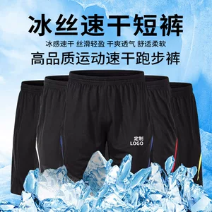 Летние мужские шорты с ледяным шелком плюс размер укороченные брюки эластичная дышащая полоска ткань спорт фитнес печатный LOGO