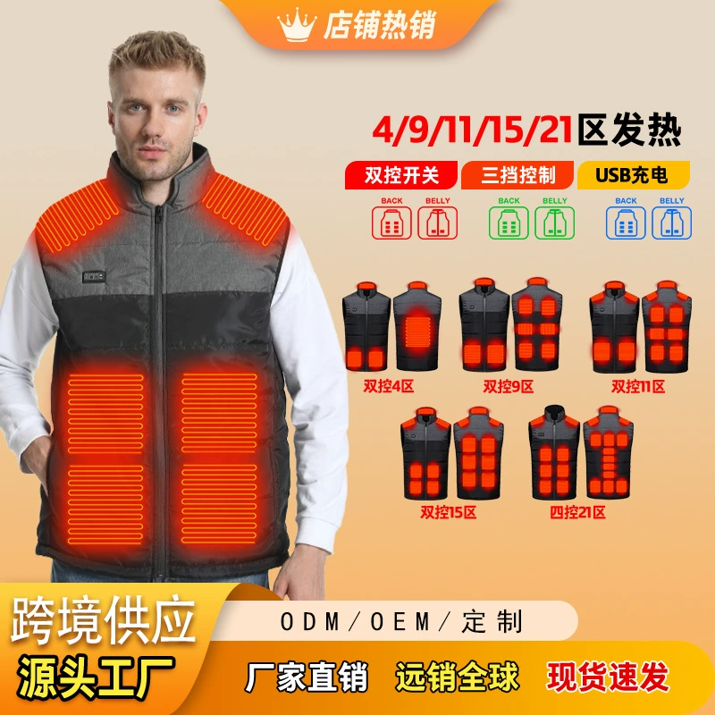Трансграничная электрическая зарядка жилета Интеллектуальный нагревательный жилет Нагревательная одежда Теплый защитный жилет с постоянной температурой Одежда для мужчин и женщин