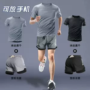 Спортивный Быстросохнущий костюм Костюм из двух частей Мужская повседневная одежда с короткими рукавами Костюм для бега Летняя быстросохнущая футболка 1801 г.