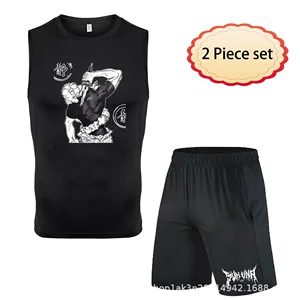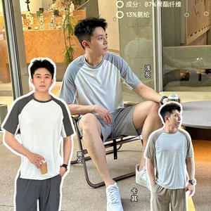 Спортивный костюм мужской: быстросохнущая футболка с коротким рукавом, одежда для бега и фитнеса, повседневный комплект из двух предметов оптом, дышащий и быстросохнущий