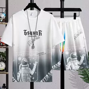 Летние шорты с короткими рукавами с круглым вырезом с принтом пара бега повседневный набор мужской быстросохнущий фитнес-костюм для бега