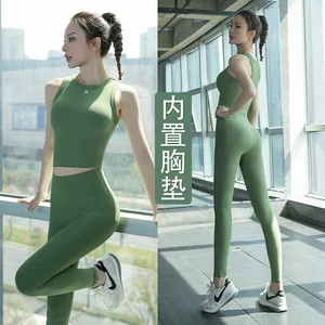 Спортивный костюм для женщин, летний быстросохнущий дышащий комплект для йоги, тренировочный костюм с коротким рукавом, универсальный облегающий дизайн.