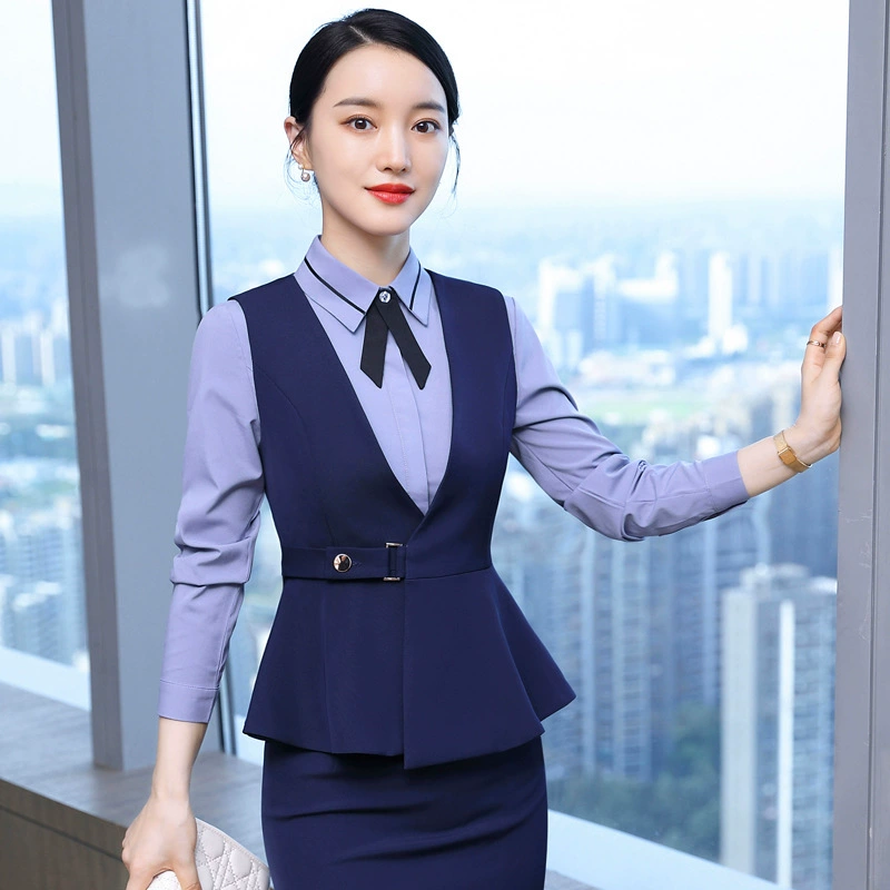 2023 осень и зима новый серый деловой костюм женский менеджер отеля стойка регистрации приталенный комбинезон жилет Комплект из трех предметов